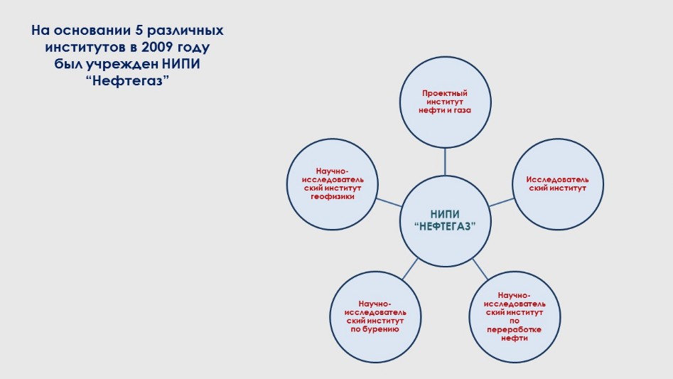 NIPI "Neftegas" - история которого насчитывает 80 лет, имеет исключительные заслуги в развитии нефтяной промышленности и нефтяной науки не только в нашей республики, но и всего бывшего СССР. Вся история деятельности института неразрывно связана с созданием и развитием нефтегазового комплекса нашей страны.